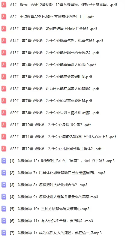 【十点课堂李筱懿:脱颖而出,12堂优质女人成长课】12节(含资料+音频)